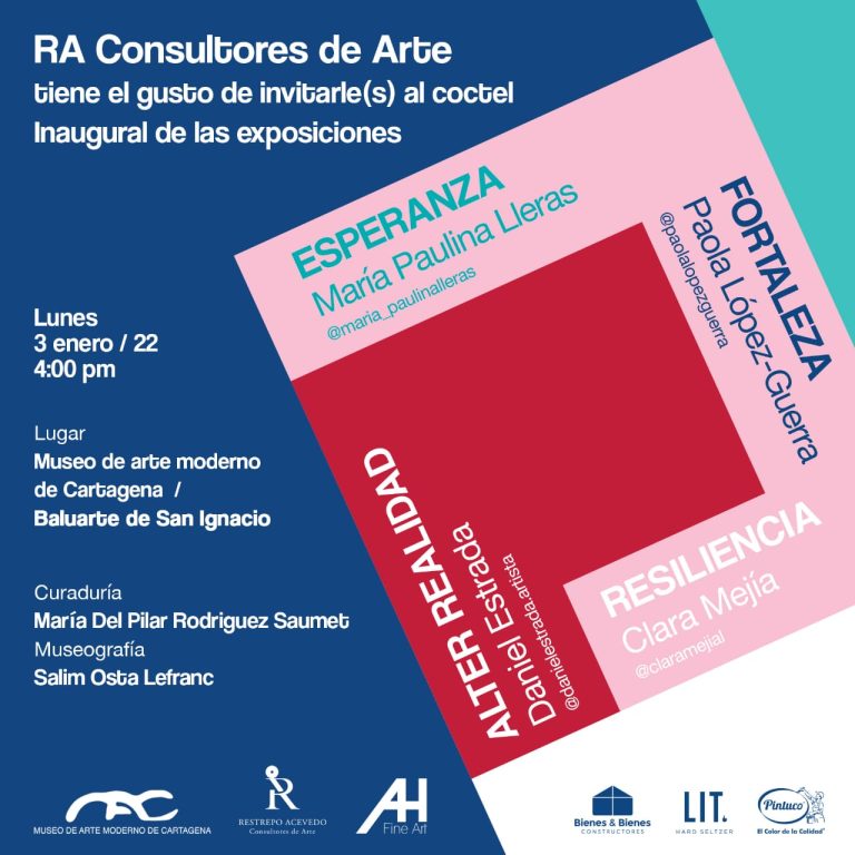 Esperanza, Fortaleza y Resiliencia, una muestra colectiva de fotografía y pintura que estimula la sensibilidad desde una estética y un mensaje grato de cara a los nuevos restos, a la luz del talento de la fotógrafa residente en Cartagena María Paulina Lleras, la pintura de Paola López-Guerra (colombiana residente en España) y Clara Mejía, pintora antioqueña con larga trayectoria; tríptico estético que es en todo un placer a los sentidos.